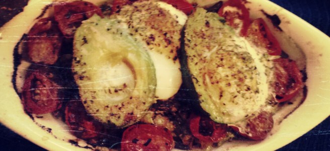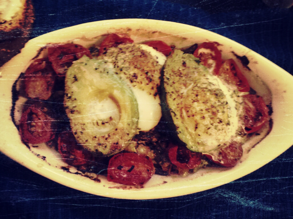 I was working from home today so I decided to make myself a nice lunch. I got rid of some vegetables from the fridge that were south of their prime, including leeks, asparagus and jalapeno. I sauted them and some cherry tomatoes in butter and olive oil and put them in the bottom of these cool shallow ramekin type dealies I got from a thrift store for like 20 cents. Then I halved an avocado and cracked an egg into each half, sprinkled salt, pepper, garlic powder, cilantro and cumin on top and baked in the oven. One of the eggs slipped out of the avocado half but, whatevs, still tasty.